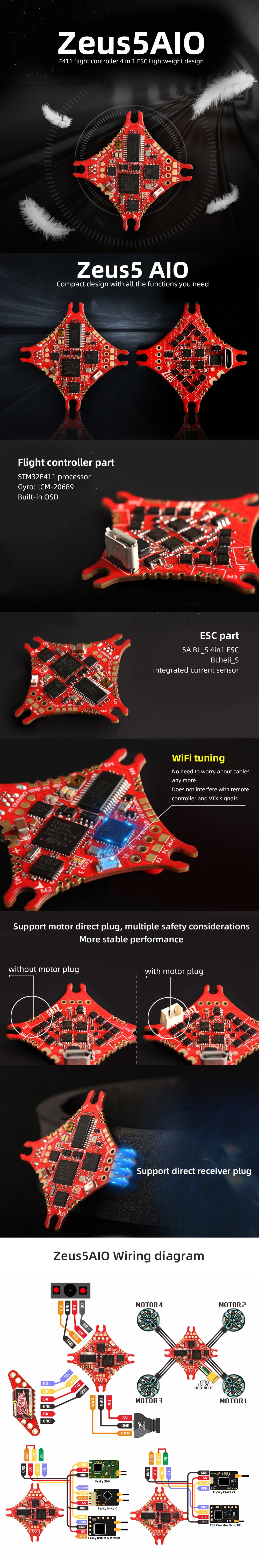 HGLRC Zeus5 AIO 1-2S F411 Flight Controller 5A BL_S 4in1 ESC
